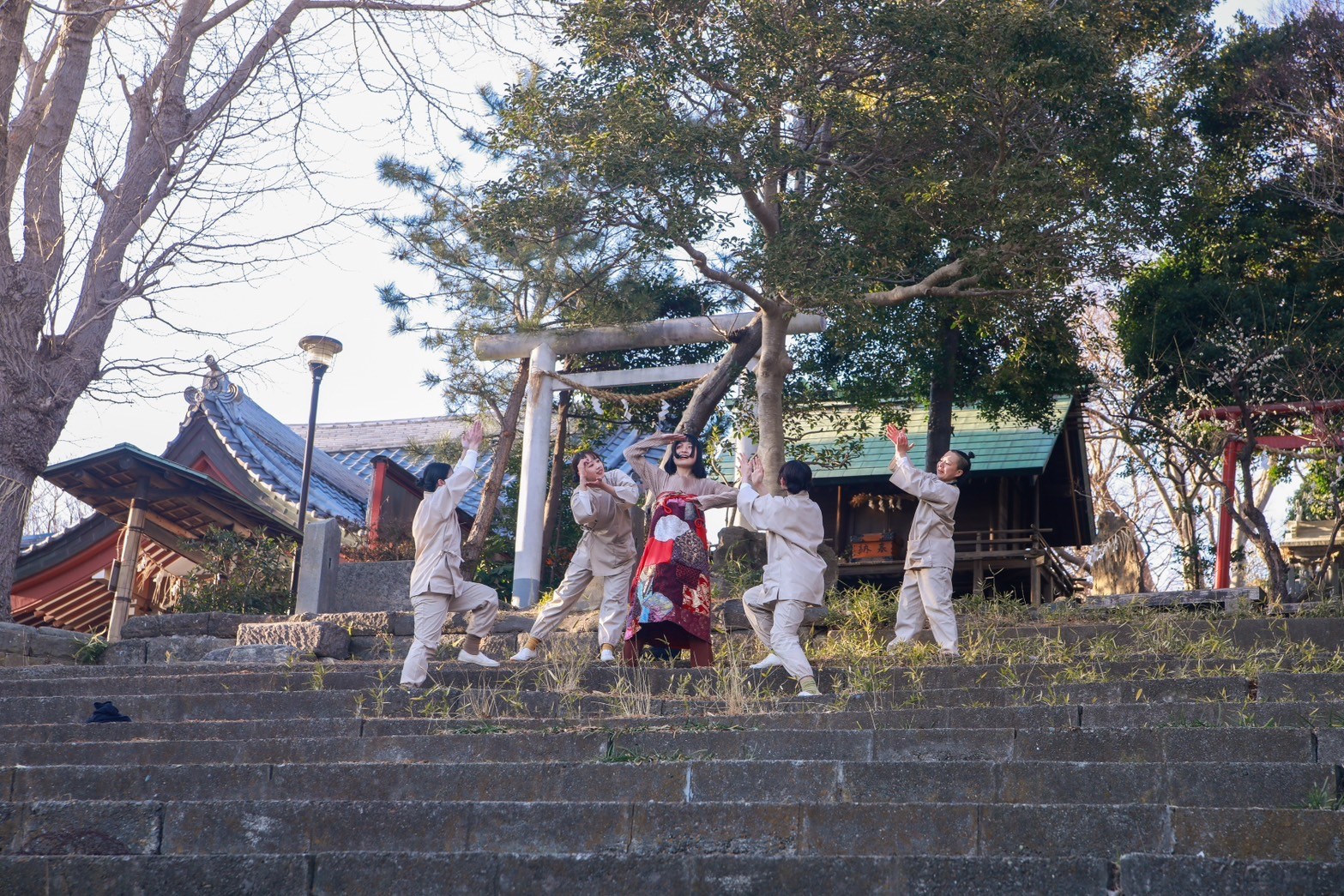 主宰のひとりである小玉の地元・神奈川県葉山町にて、葉山にまつわる3つの物体-「げんべいのビーサン」「防波堤のブロック」「名島の鳥居」-から見た景色や「ぼやき」を演劇やダンスによって表したら-という着想より制作していった野外パフォーマンスです。