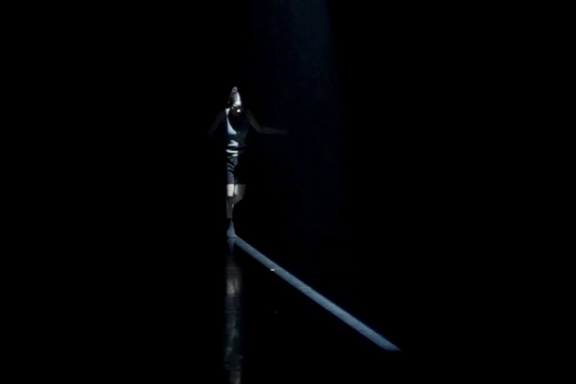 「線」という視覚的概念を起点に、舞台照明家からのアイディアを取り込みながら、「線-図形-法則を持った図形」と展開していき、ダンサーの身体と舞台照明との関係性が変化していくさまを試演しました。