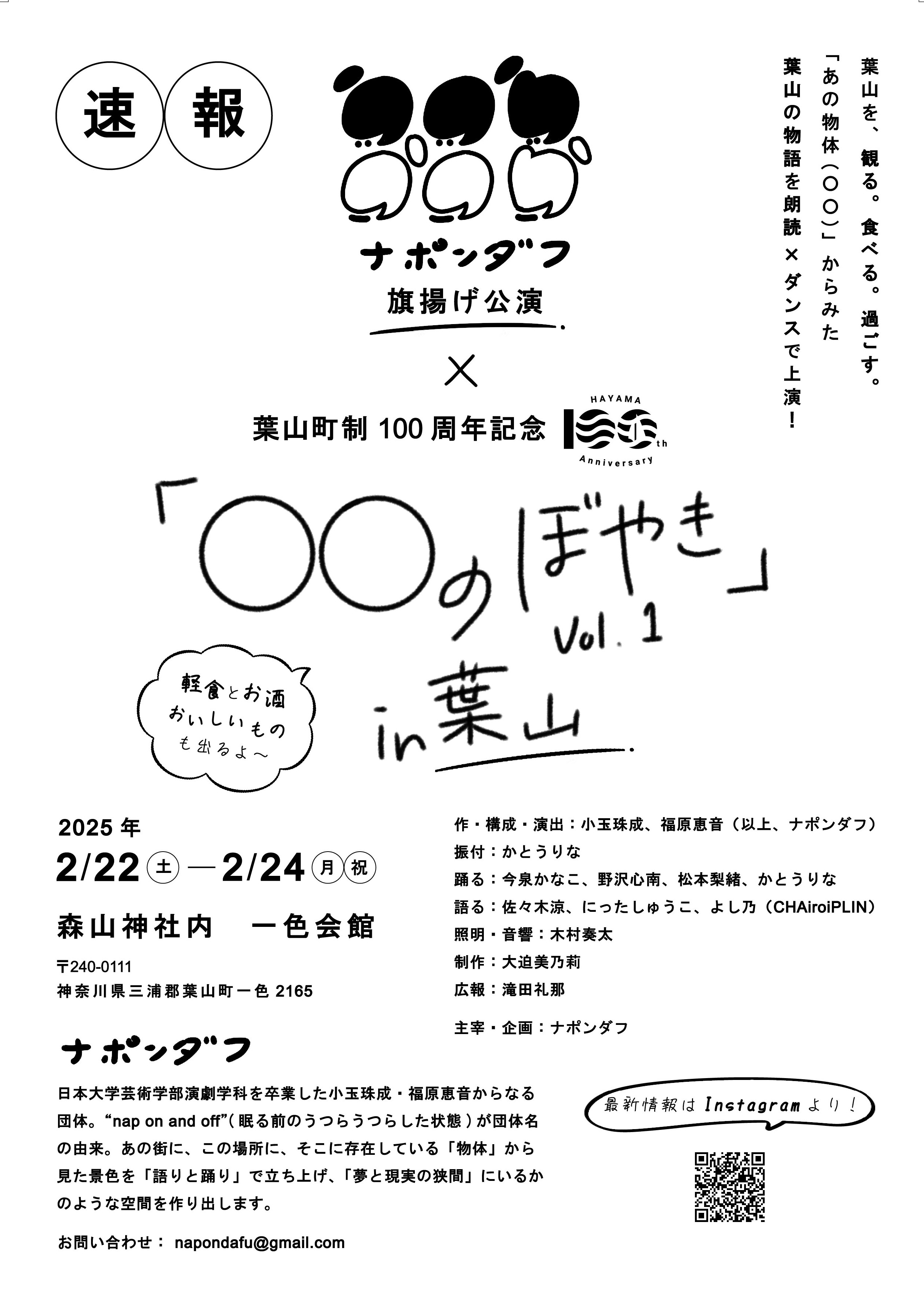 【速報】ナポンダフ旗揚げ公演×葉山町制100周年記念「○○のぼやき」vol.1 in 葉山にて振付・出演いたします!
